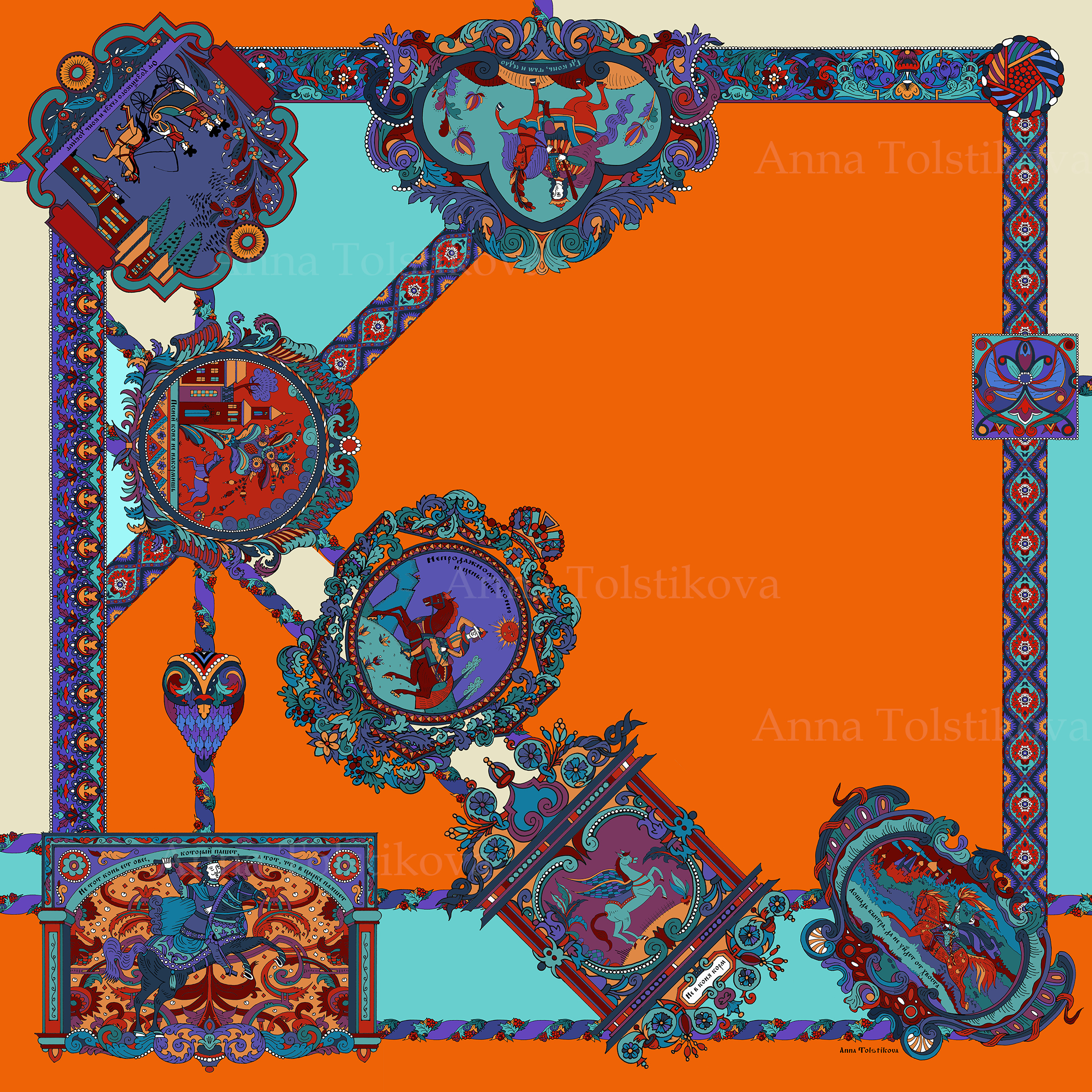 Автор дизайна художник Анна Толстикова. Получила профессиональное образование в области текстильного дизайна. Стажировалась в Японии и Америке. Лауреат многочисленных выставок и конкурсов. Занимается различными видами дизайна – интерьер, выставки, объекты. Преподает fashion design. Действующий художник – графика, живопись. Работы в многочисленных частных коллекциях и музеях по всему миру. Широчайший диапазон творческих возможностей от фольклорного стиля до авангарда и хай-тека.